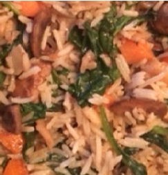 On Wednesday, which I consider ‘Without Meat Wednesday’ I prepared a homemade stir-fried vegetable rice bowl in the wok. Basmati Rice with fresh mushrooms, carrots, spinach, seasonings, spices, low-sodium soy sauce and Extra Virgin Olive Oil. I eat both brown and white rice.